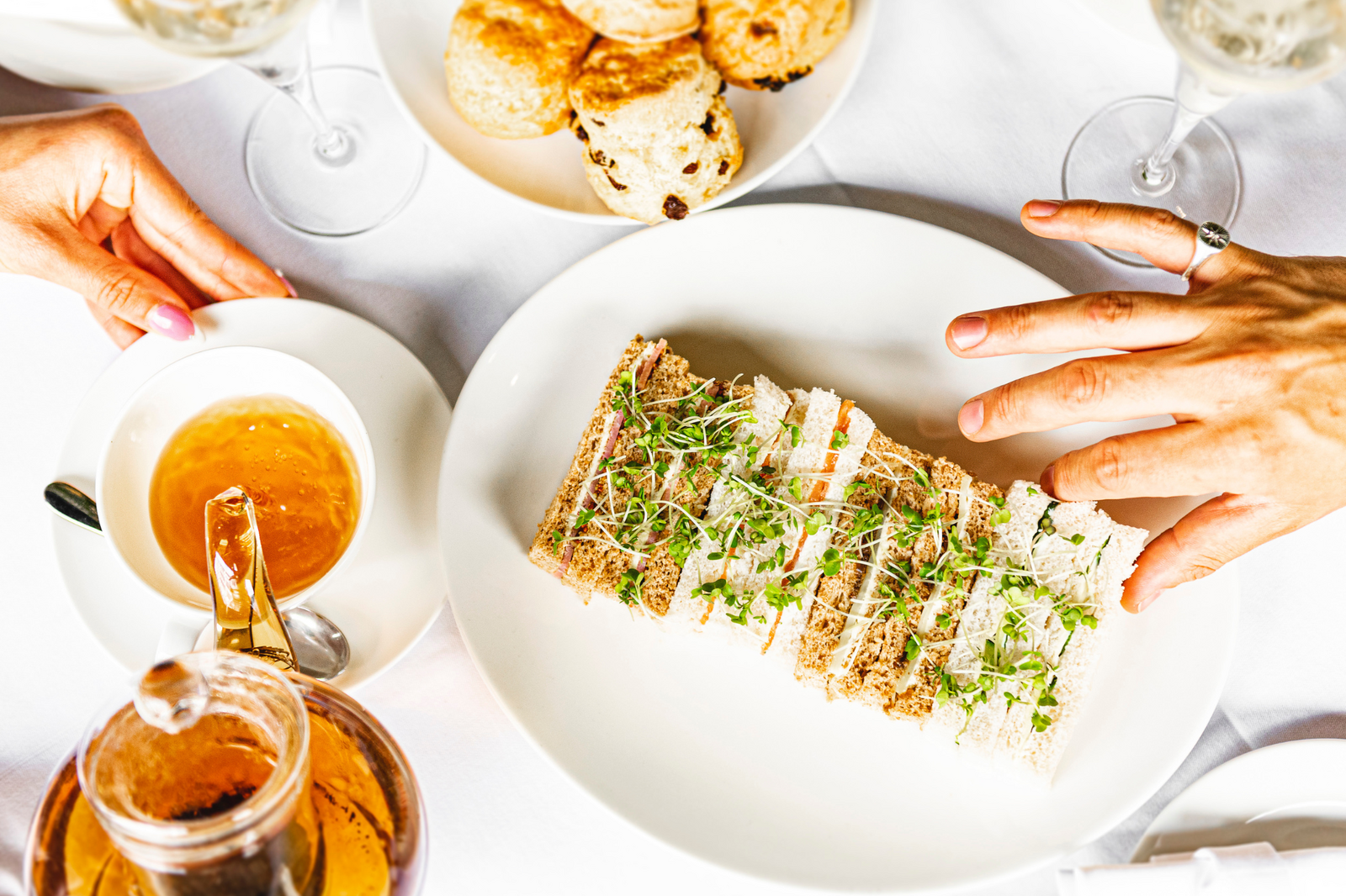 Cream Tea Option For those seeking a lighter experience, treat yourself to our Cream Tea experience at £10 per person. Delight in our classic freshly baked scones accompanied by clotted cream and strawberry jam, perfectly paired with a selection of premium teas including English Breakfast, China Rose, Lapsang Souchong, Pure Green, Earl Grey, Ceylon, and Assam. Enhance Your Experience Take your Afternoon Tea experience to new heights by adding a touch of effervescence or a crafted cocktail. Opt for a pair of glasses of Hattingley Brut NV for £20 or indulge in the sophisticated Rum Baba cocktail at £16 for two glasses, blending Bumbu Rum, Cocchi Americano, Banana Liqueur, Almond, Baileys, and Cream.