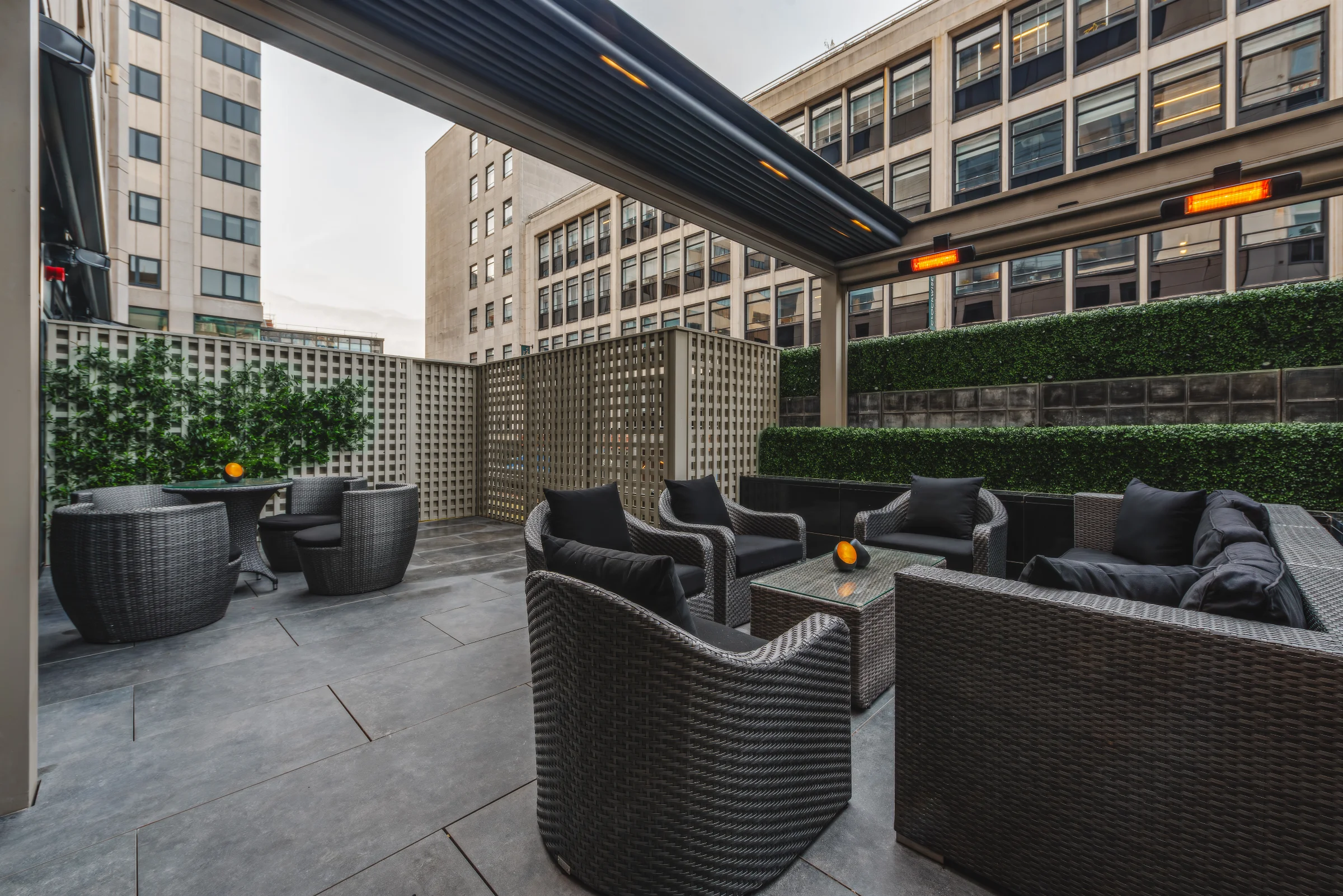 A luxurious suite on the first floor, with a spacious outdoor terrace overlooking Greek Street. Includes a sumptuous Super-King size bed, luxurious marble-top bath and rainfall shower.