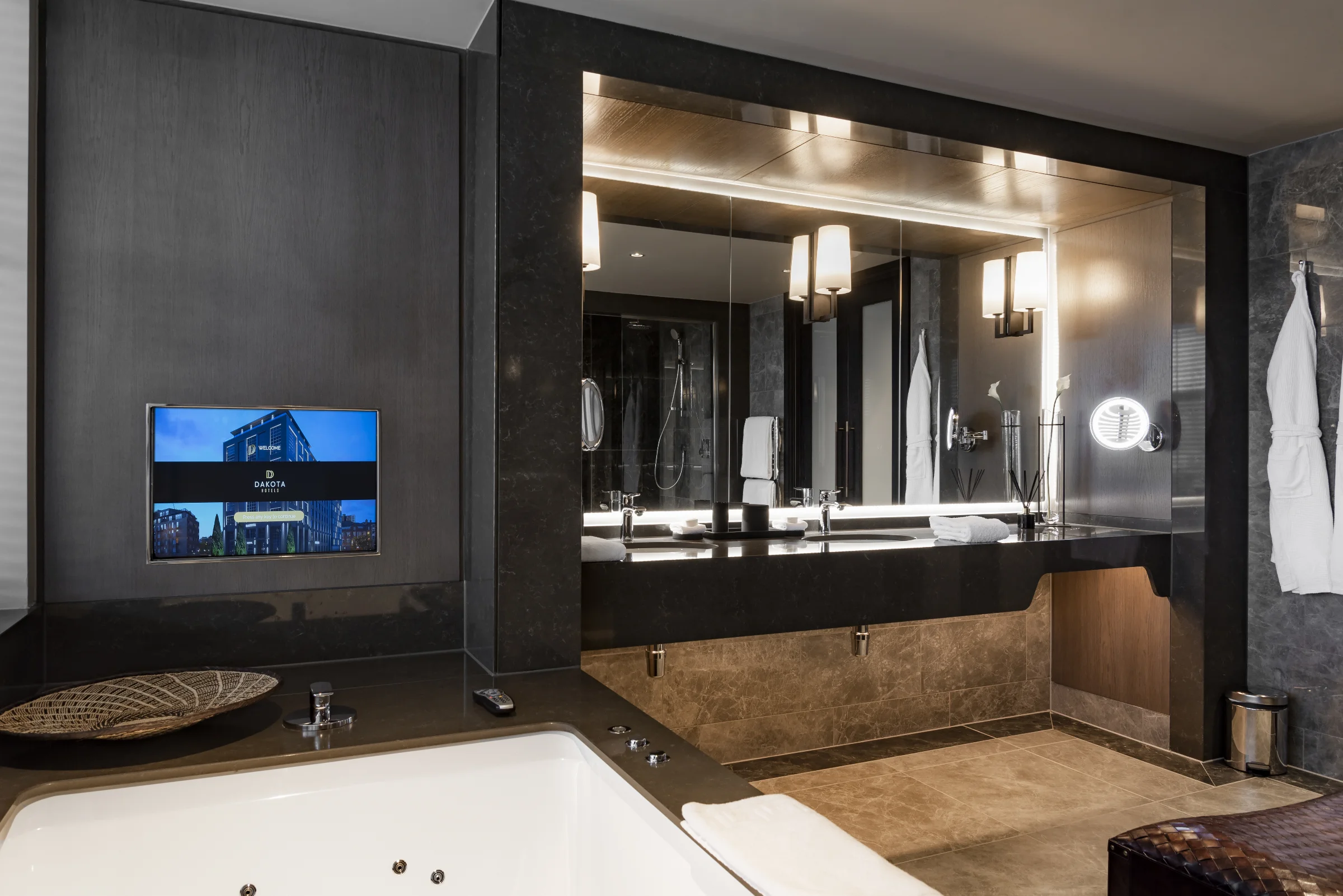 Choose our two bedroom Grand Deluxe Suite to take in the views over the city from your own private wraparound balcony. Relax in the separate bedrooms with dedicated lounge spaces, as well as luxurious en-suite bathrooms. Indulge in the largest suite in Manchester covering 175m², complete with your own personal Dakota Host throughout your stay.