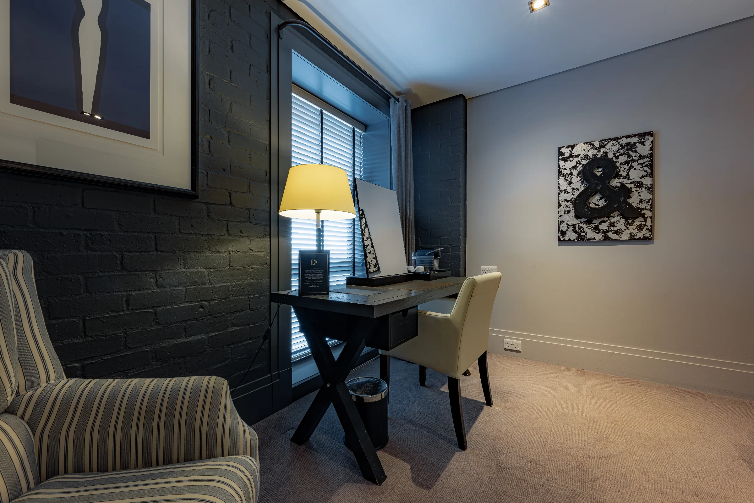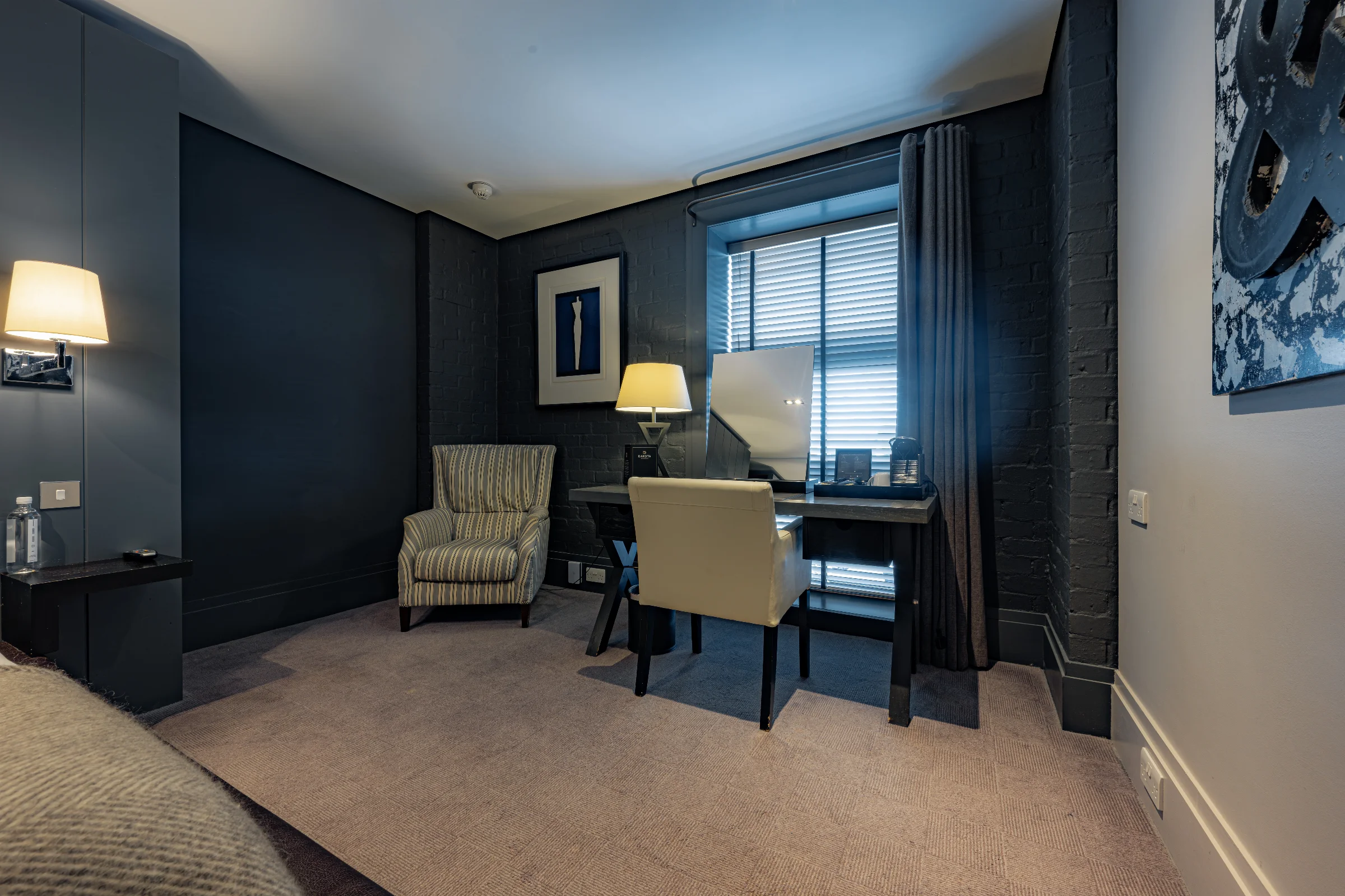 A beautifully designed contemporary room, with a large super-king size bed, plush furnishings and a powerful ensuite shower.