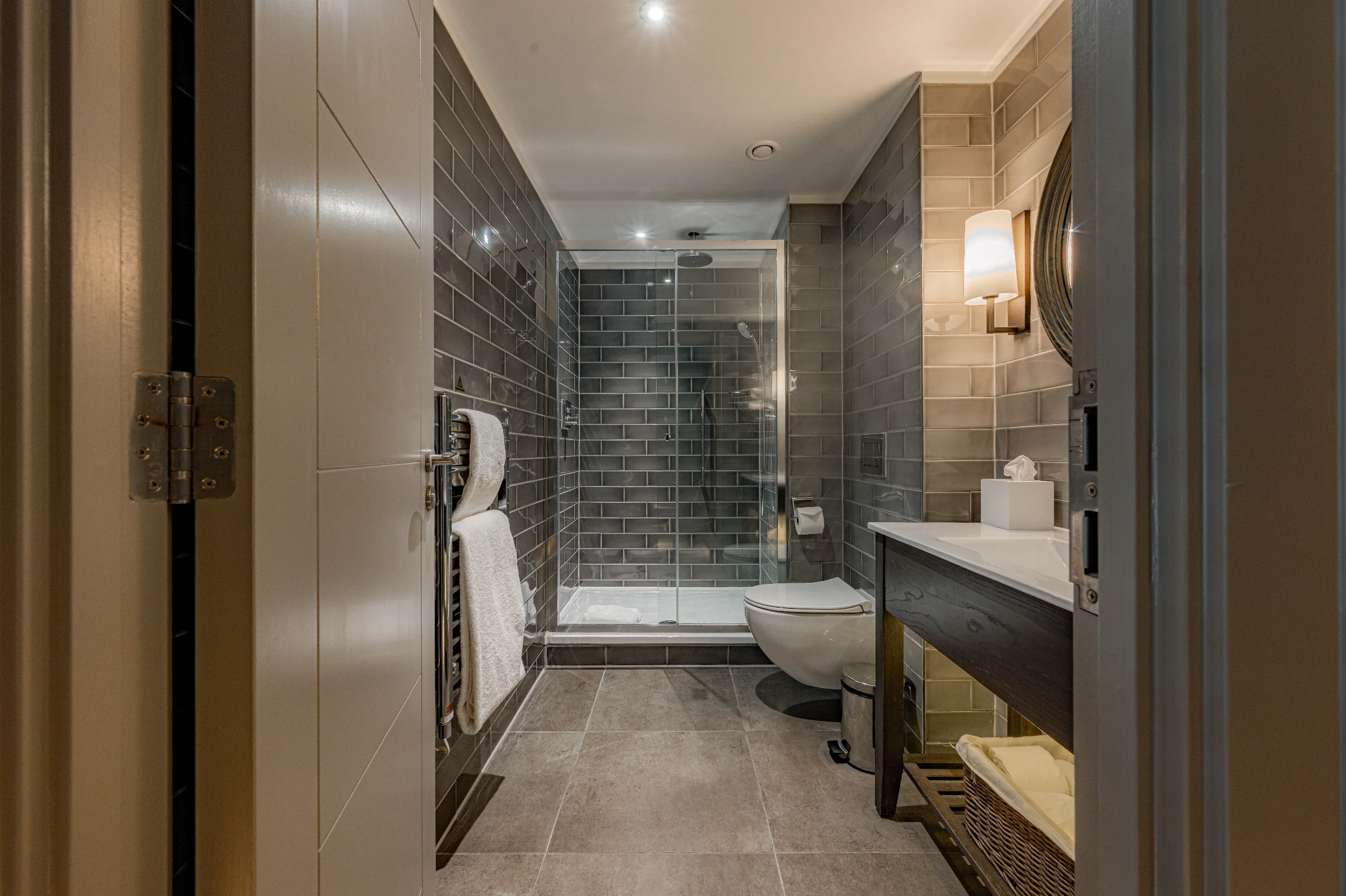 Pure calm. A beautifully designed contemporary room, with a large king size bed, luxury furnishings and a rainfall en-suite shower. No detail overlooked.