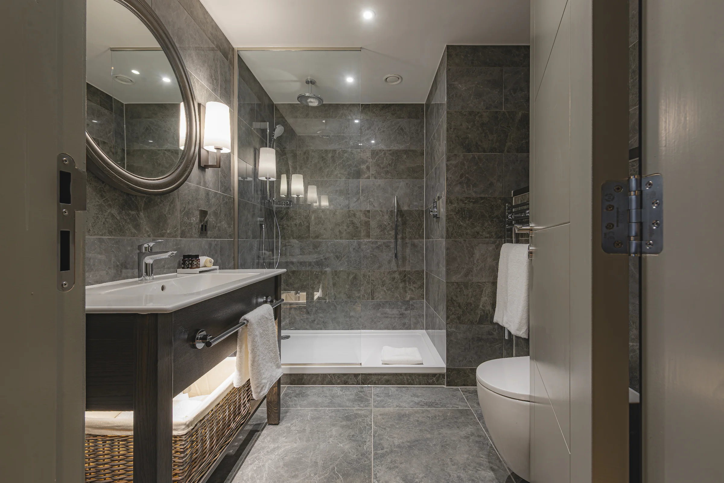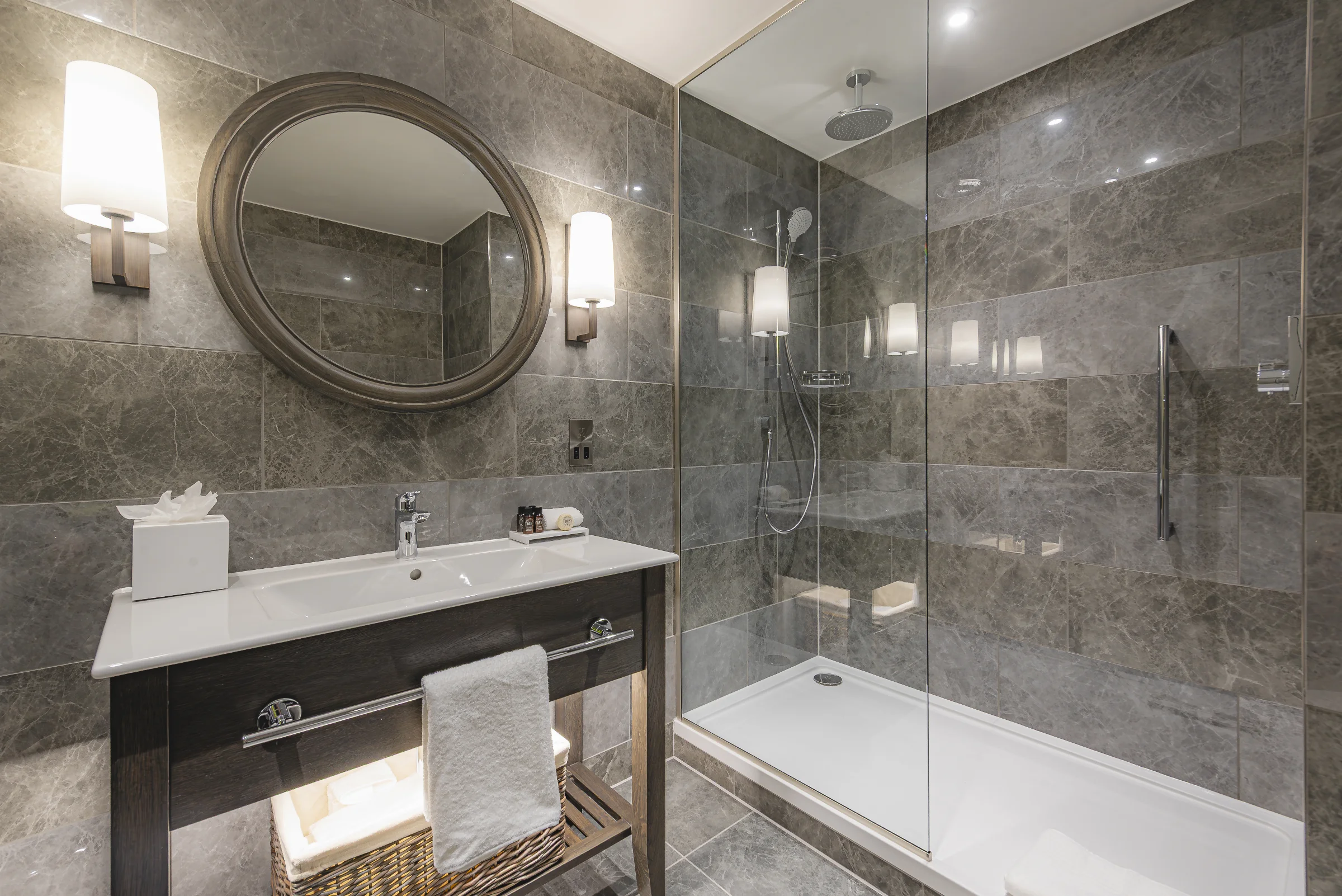 Our Classic Double Rooms offer comfort and style with crisp cotton linens, luxury toiletries, and a rainfall shower. Ideal for relaxation, these rooms include complimentary high-speed Wi-Fi and a Apple TV with Sky Sports.