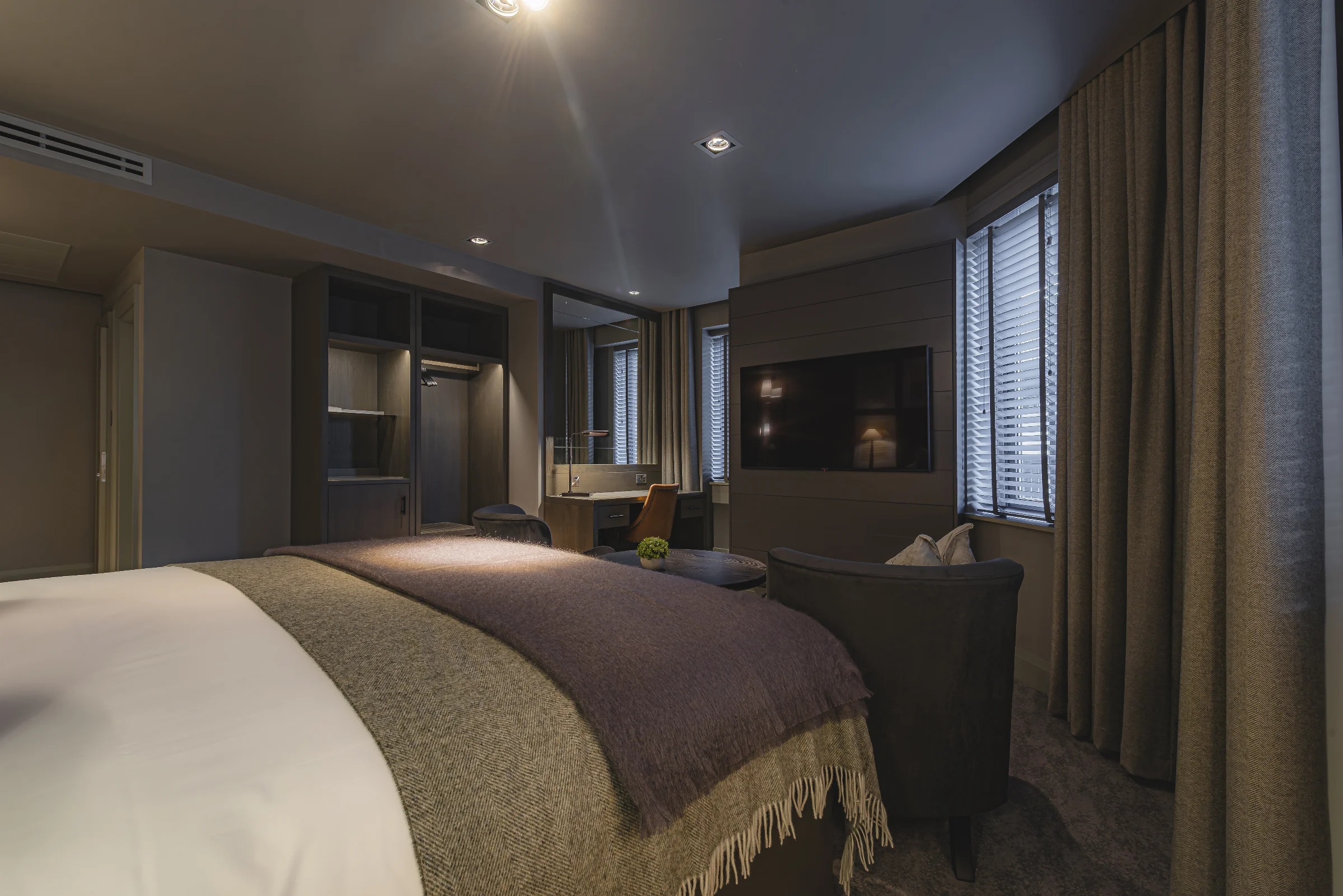 Elevate your stay in our Junior Suites, complete with a spacious living area, Nespresso machine, and a super king-size bed. Unwind in the separate bath and indulge in evening turndown service.